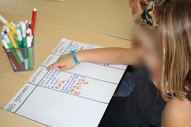 Numa reunião de conselho a E. perguntou se sabíamos porque é que não tínhamos todos a mesma cor de pele e juntos fomos descobrir o porquê. Temos na biblioteca da nossa escola a visão júnior e descobrimos lá um artigo muito explícito desta nossa questão. Depois de respondermos às nossas dúvidas fizemos exploração de cores com diferentes tintas para em conjunto descobrirmos o tom mais parecido com a nossa pele e cada um fazer o seu autorretrato. Convidamos a Catarina, uma mãe da nossa escola que tem Vitiligo para nos explicar as questões da descoloração da pele e o que era melanina.