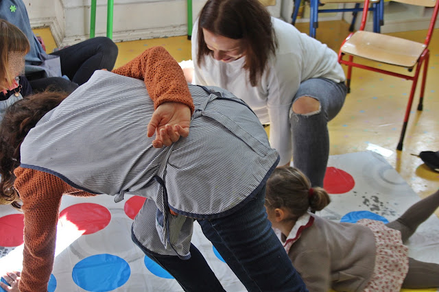 A mãe da Isabel veio à nossa sala fazer o jogo do twister. Foi uma manhã divertida onde pudemos consolidar alguns conhecimentos como a lateralidade - esquerda e direita.